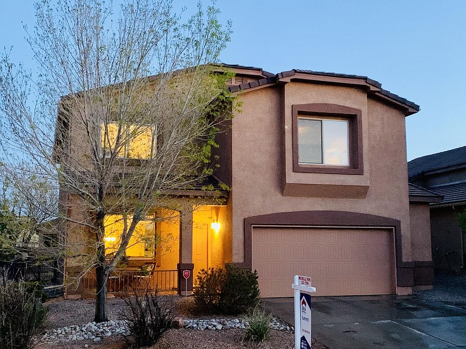 Gorgeous 2 story home in Montecito Estates! A wonderful community neighborhood with a community swimming pool, hot tub, club house, parks & walking/biking trails. On top of the Petroglyphs with beautiful neighborhood views. Popular Long Beach floor plan. Enter into a formal living and dining area. Open kitchen with Stainless Steel Appliances, large pantry, and Island! All 4 bedrooms & laundry room on the upper level. Extra-large owner's suite with jetted Tub, separate shower & roomy walk-in closet. Spacious 2nd with walk-in closet. Backyard w/ 1500 SF Custom Stamped & Stained Patio. Refrigerator, washer & dryer stay! NM Green Built energy efficient home! Roomy extended 2 car garage! 48 hour first right of refusal