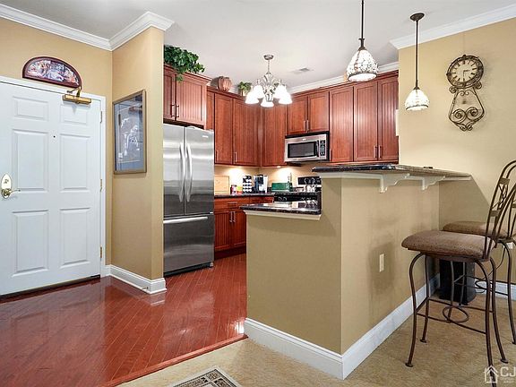 Beautiful bright, light & cheery 3rd floor DelCampo unit in desirable Plaza Grande community features cherry and granite in the kitchen, hardwood floors, separate formal dining room, cathedral ceilings in the family room, all crown molding and chair rails throughout. Ample sized rooms Private patio, garage and storage closet. Enjoy resort like amenities without going on a vacation!! This community is close to all shopping, Route 9 and Route 18. Another adult lifestyle community built by D.R. Horton!