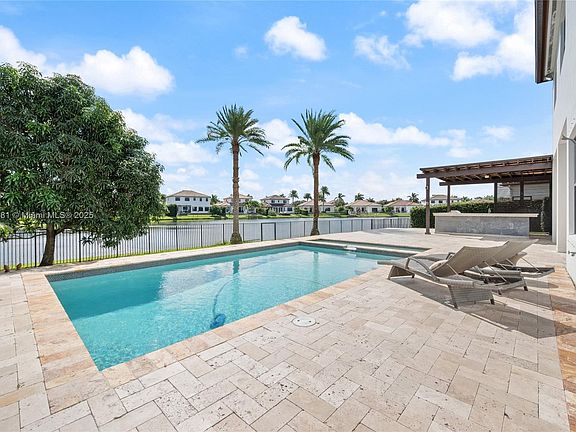 Experience luxury living in this gorgeous lakefront residence located in the prestigious gated community of Monterra. This elegant home features 5 bedrooms, 5.5 baths, and a versatile additional room in the converted garage, ideal for a gym or studio.The outdoor area offers the ultimate private resort, with a pergola, summer kitchen, contemporary saltwater pool, spa, and breathtaking lake views. The gourmet kitchen includes a center island and double ovens. The expansive primary suite showcases an extra-large custom walk-in closet and a spa-inspired bathroom. All bedrooms feature custom-designed walk-in closets. Impact glass on second-floor windows.Freshly painted interior.Resort-style amenities: clubhouse, pool, fitness center, basketball, tennis, dog park. A+rated schools. Move-in ready!