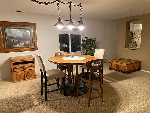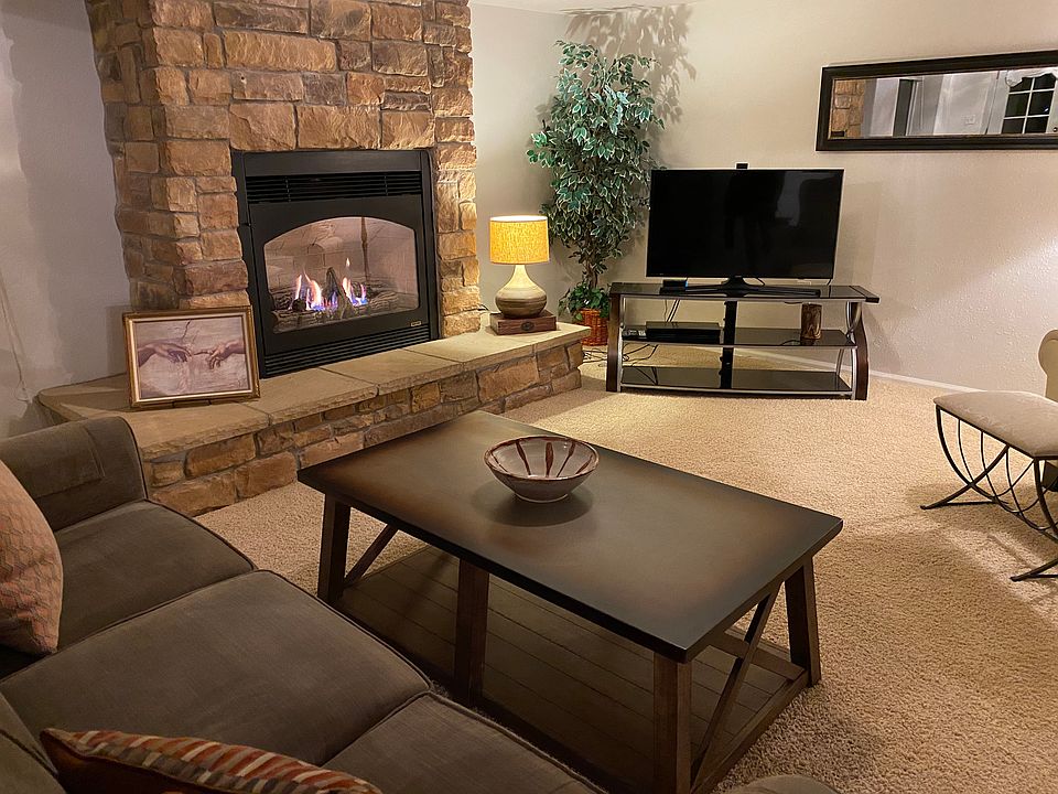 Spacious Mountain Home Basement Rental Apartment fully furnished in beautiful, safe mountain neighborhood of Peregrine, NW Colorado Springs. Very spacious and bright. Private walk-out entrance. 1700 square feet, with fantastic mountain and city view's in the foothills of Mount Blodgett - in this 5050 square foot home. Very quiet living, one bedroom, one bath, large living room open to recreation room, and office space. New furniture, new kitchenette and appliances, with private outdoor patio. Washer/dryer and beautiful gas fireplace. Driveway parking. All utilities, wyfy, security alarm included in rent. No pets no smoking please. $1800 per month, one year lease. Contact Steve (text or call) at show contact info. Open on April 7, 2025. One year lease. All utilities are included in the rent price of $1800/month.