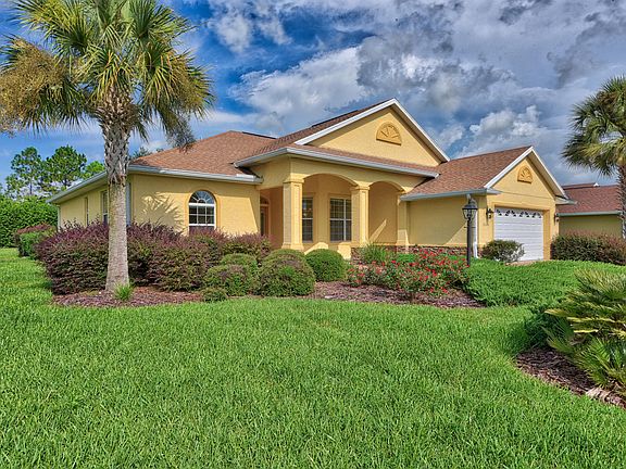 This home is so open and bright! Formal Dining with stunning tray ceiling feature, eat in kitchen area, 9 ft ceilings, jetted tub in master w/ separate walk in shower. Full appliance package with front loading w/d, triple glass sliders with a lovely view to the hedged back yard for private enjoyment. On Top Of The World is known for it's amazing amenities to truly enjoy your Florida lifestyle in this 55+ community.