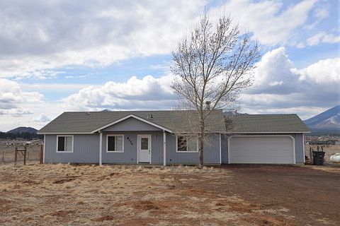 Immaculate, Ready to move into, Spacious, Single Story Living with Great Views Immaculate, Ready to move into, Single Story, 3bd/2ba, 2 car garage home on 2.5 Acres situated on the east side of Flagstaff. This 1,722 sq. ft. home has gorgeous views of the entire easterly side of the San Francisco Peaks. The home is open with vaulted ceilings in the living room and has a wood stove along with FAG Heat. The kitchen is open and has upgraded appliances. There is a washer/Dryer too that is available for your use. One is going to be hard pressed to find a home in as good of shape as this one!