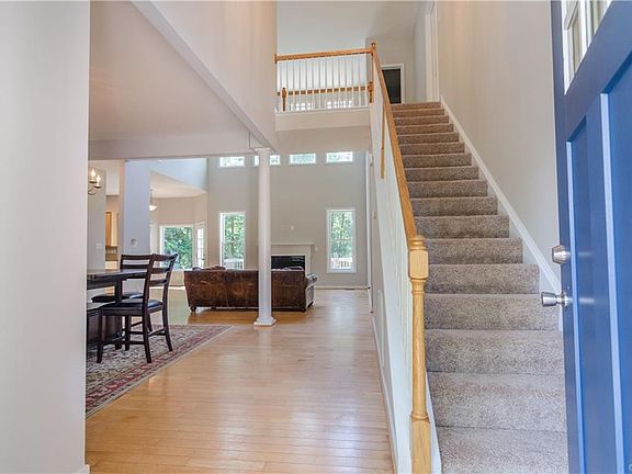 Great 4-5 bedroom brick-front home with three full baths and downstairs powder room, soaring two-story family room with fireplace, open concept floor plan, huge rear entertaining deck, hardwood floors, and first-floor master suite with large walk-in closet and attached bath with jetted tub and separate shower. New paint throughout, new carpet, contemporary ceiling fans, utility/mud room off garage, and more. The upstairs is another pleasant surprise, with tall ceilings, three secondary bedrooms and two full baths, and a large bonus room that is perfect for an upstairs rec room/family room or could easily be used as an oversized 5th bedroom.