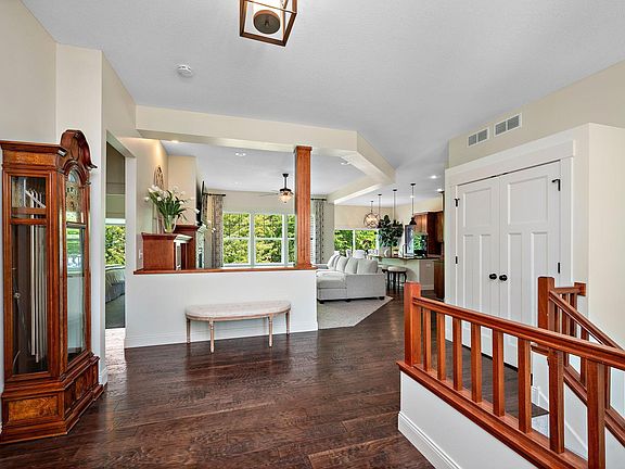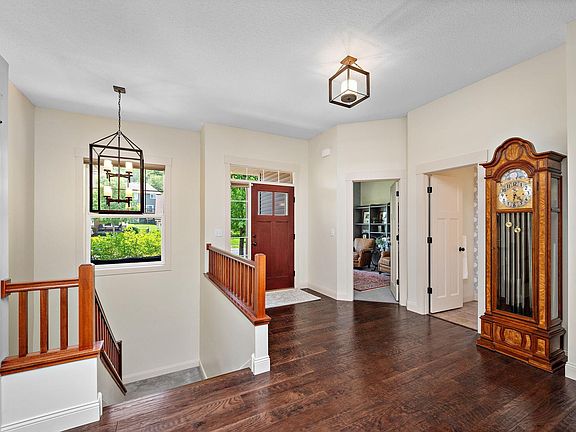 Experience distinguished living in this elegant 2012 built home. Spacious, airy and bright, this home features custom built-ins, 3 fireplaces, 9’ vaulted ceilings. The Chef’s kitchen is equipped with a generous granite center island, maple cabinets, & custom, contemporary lighting. Three bedrooms, two bathrooms, and laundry are all located on the main level, making this an excellent choice for those thinking about the future, and minimizing required stairwells. Sumptuous main level primary suite includes a bath with separate tub & shower, dual vanities, & walk-in closet. Tasteful wallcoverings. Downstairs: two more bedrooms, another bath, game room, amusement room, storage areas, (one with rough-in for a fourth bath) & a cozy screen porch. Outside, the landscape is immaculate, with an in-ground sprinkler system & beautiful landscape lighting. A rear deck off the dining area overlooks a lush, wooded conservation area. The very useful 3-car garage is heated & super-clean. Perfection.