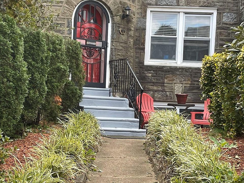 Spacious move in ready 3 bedroom , 1.5 bath row home in sought after East Mt. Airy/Cedarbrook neighborhood, this property offers a solid foundation. Exterior curb appeal features a patio and fenced front side with irrigated garden of Tuscan trees. Enter the home via a castle top sub-roofed rounded vestibule leading to large living and dining areas on the first floor. Separate dining room includes two closets with wall alcove for your china cabinet in between. The light filled straight through kitchen was upgraded into an enlarged one room layout for more appliances , up to the ceiling slate tile backsplash and solid oak cabinetry with coordinated ceiling fan and dimmable recessed lights. Kitchen door leads down solid wood stairs to the newly finished basement, remodeled in 2023 with a modernized powder room. Prior renovations to the basement included the construction of a convenient new door attached to the garage, new laundry room with sink, additional wood cabinetry with Formica counter and waterproof ceramic floors throughout. Additional updates are a new roof and water heater both installed in 2012. The heat vent system is ready for you to install a central air unit. Rear features an asphalt driveway with side fenced yard and garage with electric door opener. Second floor has a spacious front primary bedroom with two closets with same wall alcove design as downstairs. A full retro style bathroom includes an enclosed tile shower with metal glass door , porcelain tub, and farm style sink. Two additional bedrooms complete the second floor with ceiling fans that complete the home’s comfortable layout. Location is key and here you will enjoy walk-abilty to the Wadsworth business district and a quick five minute drive to major grocery and retail stores, restaurants and recreational facilities. Seamless access to major transportation lines and highways add to this properties appeal. Anyone envisioning a dream residence in the city should schedule a showing today to seize this warm, well loved home! The sq footage dimensions are shown incorrectly at 1000 sq foot however the sq footage is more than 1300 sq feet.
