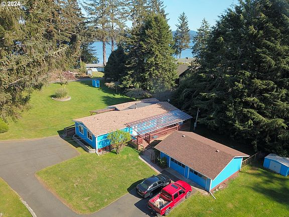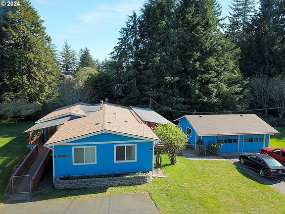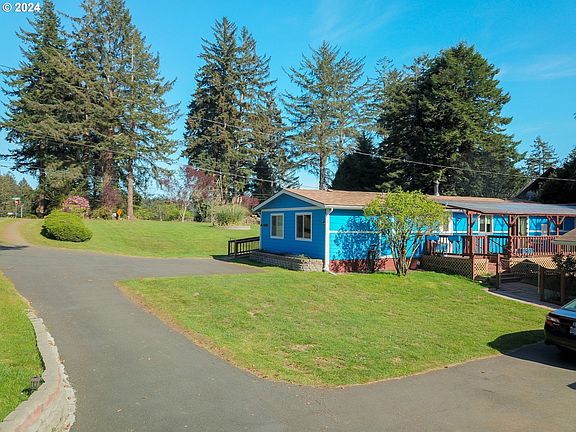Enjoy this well cared for 3 bedrooms, 2 bath triple-wide manufactured home nestled on 1.46 park like acres.This home boasts an open living and dining area with a slider leading out to a covered back deck, perfect for entertaining. Heating options are Forced Air or a Wood stove, great for those cozy winter mornings or chilly evenings.Many updates have been done with new flooring throughout most of the home.  The kitchen has updated cabinets and counters. Appliances include Whirlpool French door refrigerator with a bottom drawer freezer, dishwasher, and glass top stove; also includes a pantry and desk area.The laundry room includes washer & dryer, extra storage, additional pantry area, and a backdoor to covered deck.Large Master bedroom is on opposite end of the home from the other 2 bedrooms and house bathroom; great separation of space for dual living.  It features crown molding, a large walk-in closet, ensuite with walk-in shower, garden tub and plenty of storage.Siltcoos Lake & Darlings Resort is less than a block away from this home.  This home is also near Woahink Lake, Honeyman State Park, the dunes and the town of Florence.  Home has its own Private well.  All windows throughout the home have been replaced with double pane vinyl windows, except for bathrooms. Roof was replaced on the house in 2023 and the garage in 2022.  New water heater in 2021.Plenty of room for toys, ATV's, trailers.Orchard of cherry and apple trees. Fenced area for pets, large corner lot with circular drive. Covered front deck with ramp and beveled glass double entry.This is a beautiful home just waiting for you.