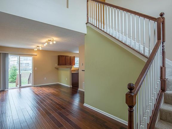 Move right in to this beautiful condo featuring Hardwood throughout the first floor and a finished lower level! Finished lower level has a half bath, a gas fireplace and an egress window. New carpet was recently installed upstairs. Double sink vanity in owner's suite. Walk out onto the extended stoop and relax on the patio surrounded by green space. Don't miss the clubhouse with fitness center, entertainment area and pool. Located where you want to be! Minutes to Worthington Mall, Polaris and the freeway.