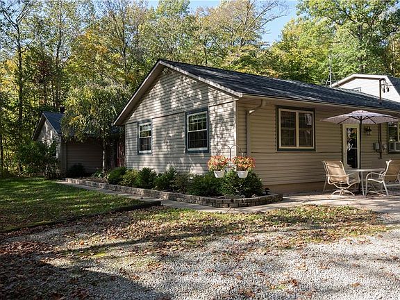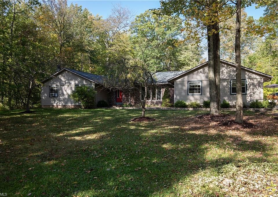 Welcome Home to this peaceful 5.5 acre, park like retreat. As you pull into the treed driveway you will see great curb appeal with pond in front and beautiful landscaping. There is a nice patio area in between the house and huge three-car garage/outbuilding with an upstairs loft. You are surrounded by woods here for ultimate privacy! This home features 3 bedrooms and good sized closets. There are two full bathrooms that have nice upgrades in each of them! There is an eat in kitchen and also a formal dining space for family get togethers! The dining room faces out to the large family room. There is also a sun room that is a perfect place to unwind, read a book, or turn into an office space! So many possibilities with this beautiful house on over 5 acres. You wont want to miss out on this one!