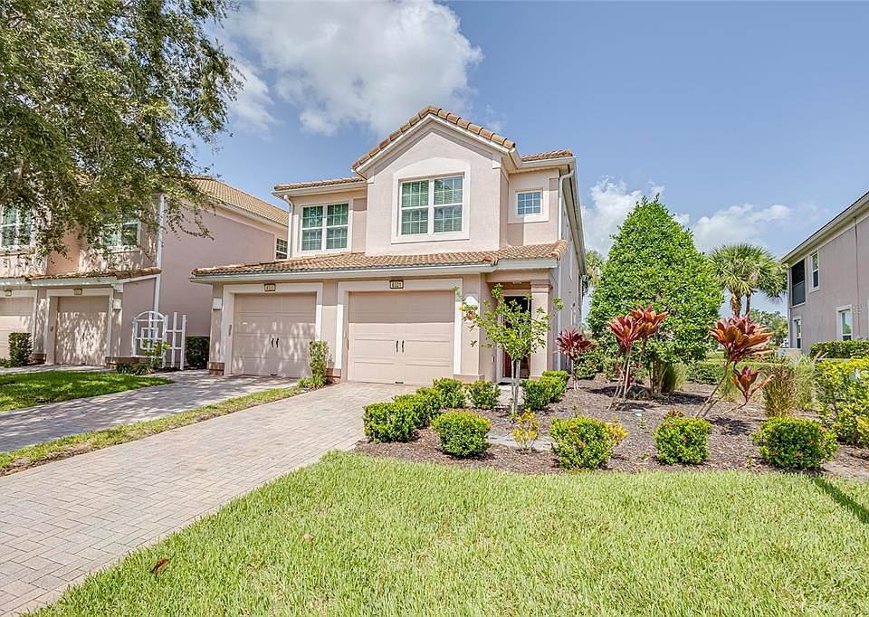 Welcome to the beautiful community of Bella Trae in Championsgate, where dreams become a reality. Disney is approximately 11 miles away, and the Orlando International Airport is 22 miles away. This beautiful townhouse has 2 bedrooms, and 2 bathrooms, with a flex room that can be used as an office or third bedroom. The condo has large glass sliding stack doors, so you can enjoy the beautiful pond view. The corner unit offers extra square footage and a larger balcony than other units. The master bedroom has a large walk-in closet. The master bathroom features a large walk-in shower with a built-in bench and dual sinks. Adjacent to the galley kitchen is a breakfast nook area, where you can enjoy a cup of coffee and a view of the water every morning. The community features an array of amenities such as a resort style heated pool, and hot tub with a beach entrance. Inside the beautiful clubhouse is a state of the art fitness center, yoga room, billiards room, media center, outdoor kitchen, fire pit, bocce ball, tennis court, and newly redesigned putting greens. There are miles of paved walkways, beautiful greenery, and multiple water features on the property. This is truly a community that the whole family will love!