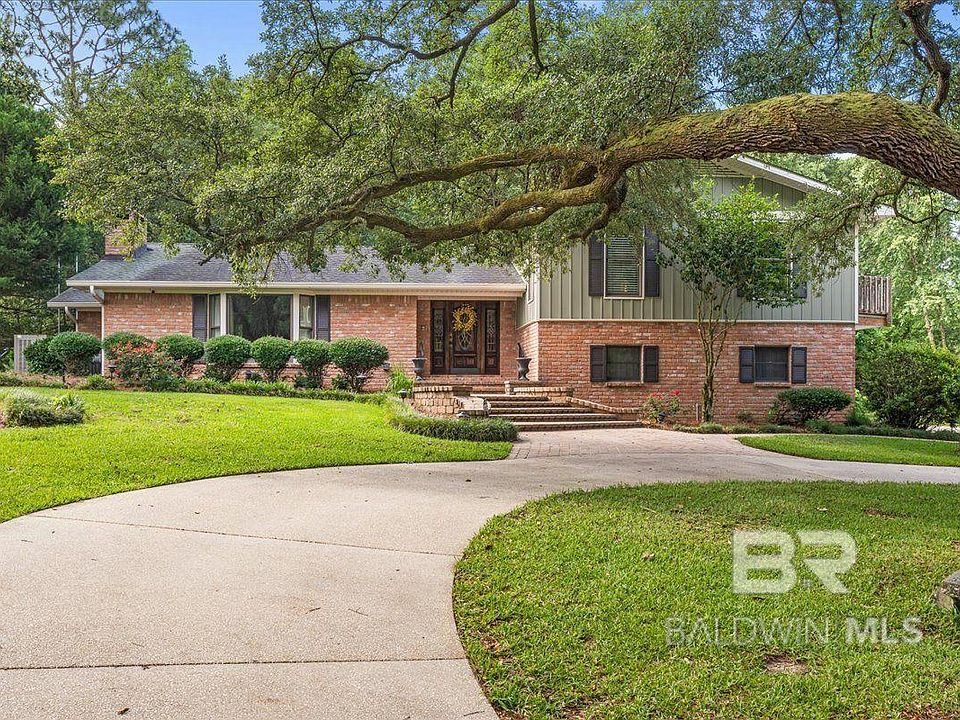 Welcome to Your Dream Home in Mobile! Located on nearly 2 acres of lush, green landscape, this gorgeous split-level home offers a blend of charm, modern amenities, and unparalleled security. Enclosed by a security fence, this property provides both privacy and peace of mind. With almost 3,500 square feet, this home is designed for comfort and style. A large sunroom invites you to enjoy the serene beauty of the backyard, scattered with majestic mature oak trees that offer shade and tranquility. The circular driveway, wrapping around a magnificent oak tree, adds a touch of grandeur to the entrance. The home features an in-law suite with a private entrance, perfect for guests. A two-car garage includes a "safe room," providing shelter during Mobile's rare tornadoes or a secure space for your valuables. For added peace of mind, this home includes the largest safe available from Fort Knox Vaults, valued at approximately $12,000. This home continues to impress with the convenience of a whole-house generator, ensuring uninterrupted power. The interior is equally impressive, with stainless steel appliances. Gather around the cozy wood-burning fireplace in the den, enjoy meals in the separate dining room, and step onto the walkout balcony that connects the upstairs bedrooms, offering lovely views of the property. This home seamlessly blends character with modern updates, creating a warm and inviting atmosphere. Don't miss this rare opportunity to own a unique and secure oasis in Mobile.Embrace the blend of elegance, security, and modern convenience. Schedule your private tour today and experience all this exceptional property has to offer! Light fixture in formal den does not convey. Buyer to verify all information during due diligence.