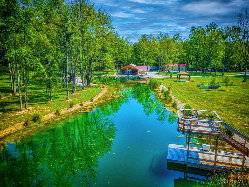 5 Bedroom, 3 Bath Ranch Home on 28.31 acres bordering Lake Waynoka. Enjoy the Park like setting with manicured pond and fountain, gravel banks, 2 docks, shelter picnic area, detached pole barn, storage shed. Home has two sections. Main House section has 3 BR, 2 Bath, granite countertops, vaulted ceilings, tile backsplash. Efficiency section of home has 2 BR, 1 Bath, Kitchen Island, tile backsplash. Large home for family or use efficiency section as income producing property. Concrete floor carport, covered porch, many electrical outlets, and water spigots throughout property. Private, relaxed setting, perfect for a forever home or weekend getaway.
