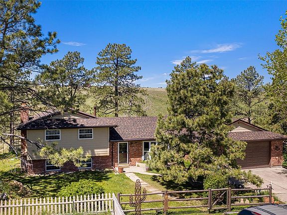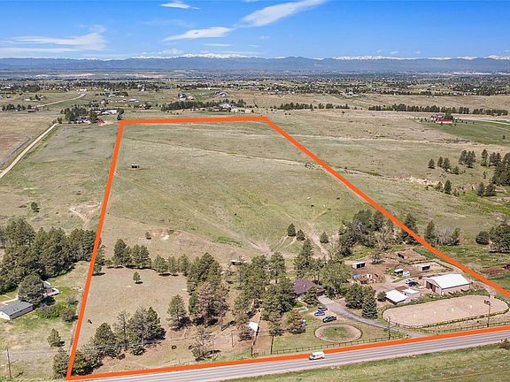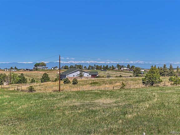 Serene 40 Acre Horse Farm close to the heart of Parker! Horse Boarding Income Opportunity! This majestic horse farm property is an equestrian enthusiast's dream. The charming residence boasts a remodeled eat-in kitchen, spacious living room with a cozy woodburning fireplace, and a great room with attached sun room. There's plenty of room upstairs with 3 bedrooms and a full bathroom. Guests can enjoy privacy in the spacious lower level bedroom with an ensuite bathroom. This working farm includes: 1 Chicken Koop (indoor & fenced in outdoor) plus/ plastic shed, 1 Goat pen - wraps around the chicken Koop, 1 Big arena, 1 round pen, 1 pen by the barn, 2 big paddox, 4 big loafing sheds, 2 Smaller animal shelters behind barn w/ fencing, 1 Barn with 4 stalls w/ Runs (Priebert), 1 stall w/no Run, 1 tack room and 1 bar/sitting room, 1 storage shed w/3 separate rooms w/separate entrances, 1 Hay storage building w/metal siding (holds 500 bales of hay). The ample facilities currently care for 17 horses, fainting goats, and chickens. Imagine building your dream home on the west side of the 40 acres with unobstructed mountain range views! Opportunities abound with this special property sitting just 10 mins from Downtown Parker, schools and shopping.