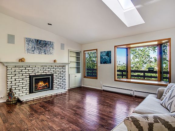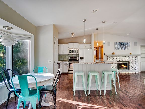 Private upgraded ranch home with a wonderful yard, detached 2 car garage and thoughtful improvements and updates throughout. You'll spend quality time in the sunroom gazing out into the forest! The clean, white kitchen has granite counters, newer appliances and even subway tile backsplash! Lots of natural light, a garden window and a great granite island--perfect for serving and lingering below mason-jar pendant lights!! Skylights keep it bright and the hand scraped wood floors create a warm and woodsy environment. The painted brick fireplace is a wonderful place to gather by the stone hearth and large mantle!