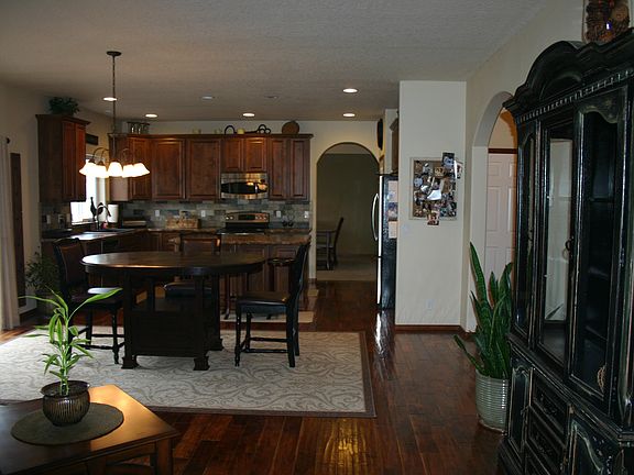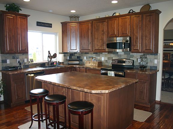 Built in 2008 with all the upgrades. Spacious 3743 square feet, two story (all above ground) living in Strawberry Fields Subdivision where shops are allowed! Central AC, gas forced air. 3 living areas, gas fireplace with large stone hearth, formal dining, massive master bedroom with sitting area/baby nook, laundry chute, 1500+ sf of hardwood flooring, upgraded fixtures, concrete counter tops in kitchen and master bath, 3 car finished garage, RV parking, 800 square foot bi-level trex deck, gas plumbed for dryer/stove/outdoor grill, landscaped with concrete curbing, front/back sprinklers, large custom outbuilding for your lawn equipment/storage. All bedrooms have large walk-in closets, plenty of storage here! Too much to list. $312,900. Call for showing. Bring your realtor if you have one, 3% offered to buyers agent.