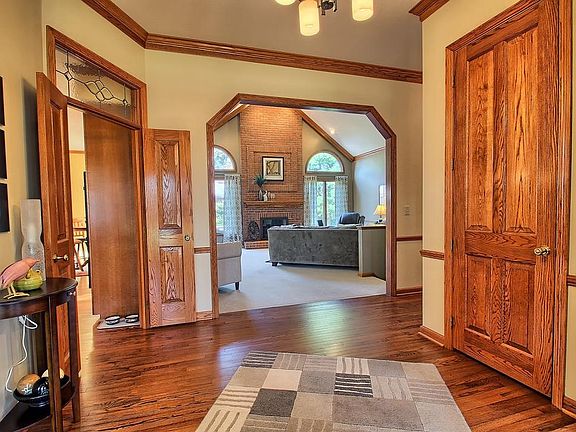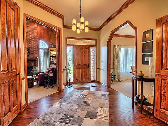 Picturesque views with a serene & tranquil setting describes this stunning 3 bedroom, 2.5 bath ranch home located in the desirable Jefferson Woods. RELAX watching the backyard wildlife or reading your favorite Novel in the 4 SEASON ROOM! Gourmet kitchen is a cook’s delight featuring a Jenn Air range, double oven,beautiful granite countertops, tile backsplash & 42 in. Cabinets. This stunning Grundy quality built home boasts 10 ft. ceilings, 8 ft SOLID wood doors w/transom windows. The CROWN MOLDING is AMAZING as this compliments so many rooms in the home. Gleaming hardwood floors in the foyer and Kitchen. Two gas log fireplaces one in the Great room, the other in the den which is accented with a cathedral ceiling, brick fireplace and a wet bar! Roof-09'',Furnace-07,HW tank 2016. Cntrl Vac