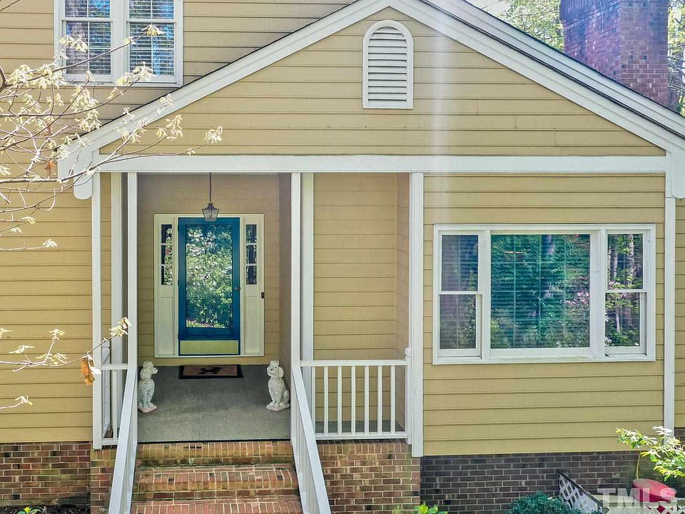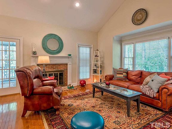 PRIVATE END UNIT TOWNHOME! Centrally Located North Raleigh 3 bedroom/3 Bath Townhome offers 1st floor living with master bedroom & one guest room on main level. Wonderful family room with fireplace, hardwoods & soaring ceilings. Dining room leads to galley kitchen w/lots of light, tile backsplash & eat-in area. Upstairs bedroom can be Bonus room with full bath, closet, separate heating/air unit. Oversized Screen Porch overlooks wooded area, has privacy wall & ceiling fan. All appliances Convey.