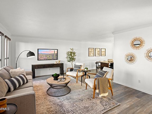 Dual Pane windows and sliding glass door along back of home. Large Great Room with THREE Windows (floorplan rarely available) *Two large bedrooms, both with WALK-IN CLOSETS. Both bathrooms feature upgraded vanities, surrounds, fixtures and lighting. Spacious backyard features a large Covered Patio with concrete flagstone - great for for a table and chairs to entertain in our beautiful AZ weather. Also includes a large storage shed. *HOA fee includes water *Close to community walking paths *Minutes to downtown Scottsdale, Galleries, Shops, Spring Training, Restaurants & Chaparral Lake