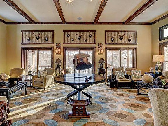 This beautiful, meticulously cared for home was designed by a prominent NY architect! It sits on nearly two acres of mature trees for privacy as well as open spaces for clear views. The fabulous foyer starts the journey to all areas of the home. The kitchen offers newer appliances and a large farmhouse sink. Massive, antique doors welcome you into the expansive living space. The 12' ceilings take full advantage of lake views. The owners are both renowned interior designers and all carpets were custom designed by one of the owners who has also designed carpets for Oprah, Bill Gates and the Oval office. A wonderful screened deck is perfect for warm summer evenings when the breeze is welcome and the bugs are not. The entire second floor is dedicated as the Master Suite and boasts two full baths. The lower level, generous sized walk out bedrooms have 9' ceilings and full baths. Storage as well as a laundry area complete the lower level. This is a special home looking for new owners!