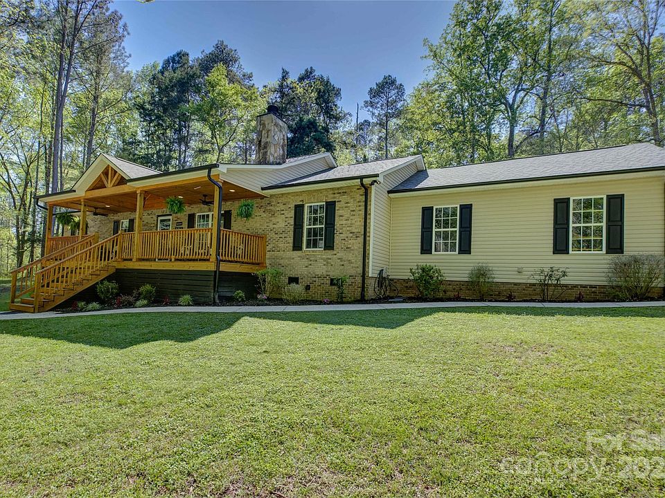 Want privacy, NO HOA, & Union County Taxes? This is it! This beautiful updated RANCH w/ a side-load 2-car garage sits on almost 2 acres surrounded by trees. The home features an expansive front sitting porch (Added in 2022). The vaulted great room has a fan & a lime-washed stone corner fireplace. Luxury vinyl plank flooring (added 2022). Cook's kitchen w/ newly painted white cabinets, quartz countertops, stainless steel appliances (added 2022), & a side sitting bar. Large open sunroom, with custom shelves, leads to private back deck. The Hall laundry room has a brick accent wall and built-in cabinets. The Primary bedroom has a tray ceiling and a ceiling fan. Primary Bath has: skylight, tile floor, and a walk-in closet. 2 additional bedrooms, OFFICE (with a closet), and a BONUS/FLEX ROOM. New Roof (added 2022). HVAC replaced (July 2024). Workshop/shed w/ electricity & lights. Well head was replaced & new cover (2022). Septic - new alarm system & pumped (2022).