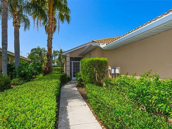 Welcome to Stoneybrook Golf Community and to a wonderful 3BR/2BA waterfront maintenance free villa. This fantastic villa has great features to include: a split floor plan, beautiful bamboo floors, crown molding, tile thru-out all the other areas & New AC system. Open floor plan has a kitchen adjoining the family room that is great for entertaining. Triple glass sliders out to the oversized lanai offer beautiful Southern Exposure water views. The kitchen has a breakfast bar, ceramic tile, backsplash, Stainless Steel Appliances, a double sink, and a large walk-in pantry. The MBR is on the lake side of the home with lots of windows, bamboo floors, walk-in closet and a large master bath with dual sinks, garden tub, & shower. The 2 guest bedrooms have bamboo floors & nice closets! To add more value to this home it has a barrel tile roof, oversized 2 car garage, and hurricane shutters. Maintenance includes roof, exterior and grounds. This is a must see with its great floor plan and wonderful lake views. Resort Amenities include: fitness center, fantastic pool and spa, tennis, pickleball, volleyball, basketball, dog parks, trails, baseball field, playgrounds, picnic areas and lake w/fishing pier. Heritage Harbour is close to Benderson Park, beaches, shopping, and 3 airports! The Heritage Harbour Golf Course has a 18 hole Championship Golf Course (IT IS NOT MANDATORY THAT YOU JOIN) but you can use the Country Club Restaurant and can pay to play golf.