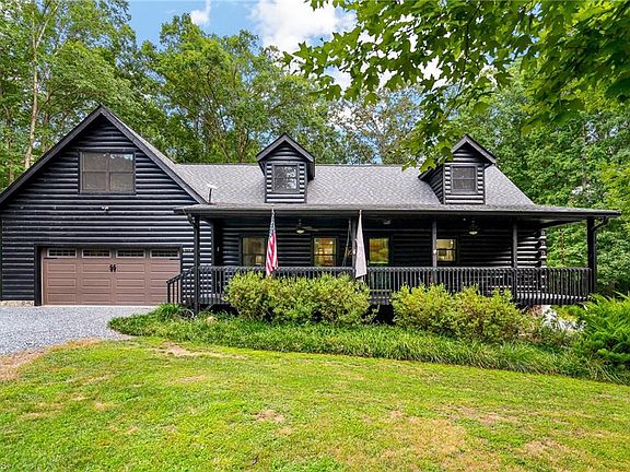 LOG CABIN oasis on 4 + acres w/ amenities galore & NEW ROOF! Moments from Randleman Lake. Acreage, rocking chair front porch, pond, zipline, hot tub, pool, fire pit, in-law suite, circle drive, RV hook up, generator, the whole package! Inside boasts 3bdrms, 2.5 ba w/ flex room currently used as a 4th bdrm w/ closet. Landing upstairs is SUPER SPACIOUS. From the moment you walk in, your mouth will drop, exposed beams, vaulted ceilings, shiplap, open concept, log railing & more. Kitchen recently remodeled, distressed cabinets, butcher block style counters, farmhouse sink & new light fixtures. Oh the primary suite, its BLISS! Loads of natural light, spacious, unique layout w/ private door to back deck. Bath has dual vanity & walk-in shower. Upstairs find 2bdrms w/ flex room & hall ba. Oversized laundry room. Detached in-law suite features granite, farm doors, kitchen, bathroom, large room upstairs & walk in closet. Covered parking as well! Hours of FUN to be had here, she's a true STUNNER!