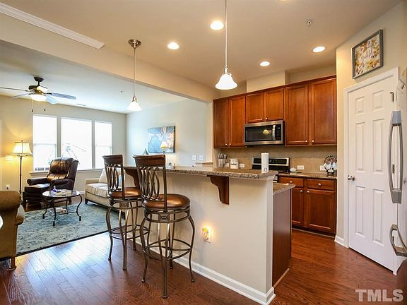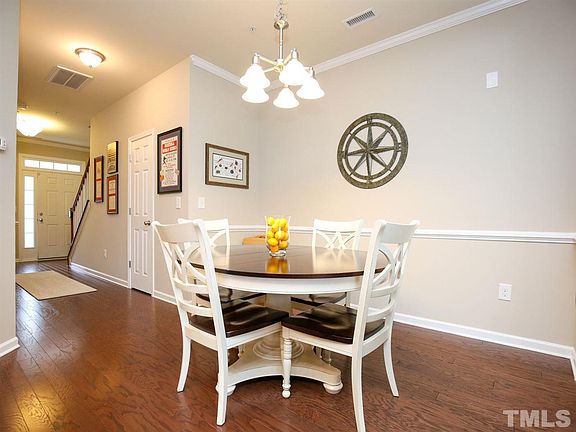 Immaculate N. Raleigh townhome features an open floorplan, 9 ft ceilings, granite counters, gas range, one-car garage, and private TREX patio/deck! First floor features hardwood floors, crown and chair molding, 42" cabinets, SS appliances, and walk-in pantry! Second floor features 3 bedrooms! Master suite features tray ceiling, walk-in closet, private bathroom w/tile floor, double vanities, and garden tub/shower! This neighborhood has 2 pools, tennis courts, soccer field, walking trails, and a clubhouse!