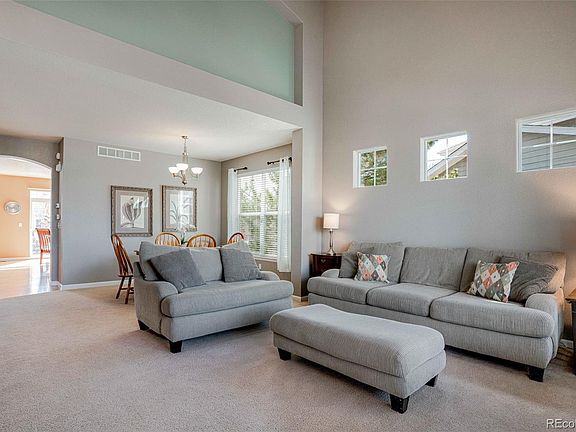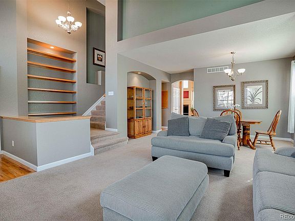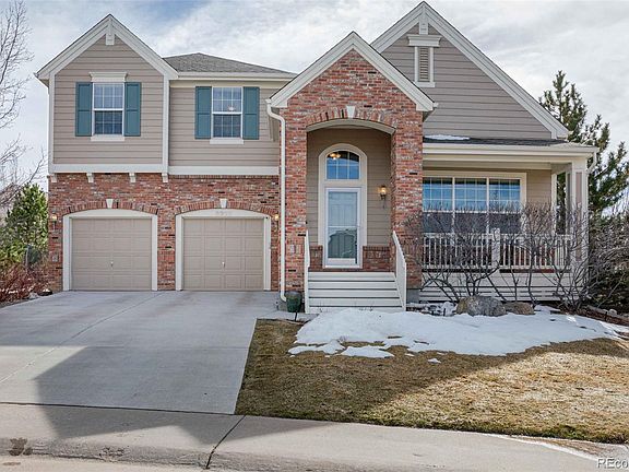 Remarkable two-story in sought-after Castle Pines North! Situated at the end of a quiet cul-de-sac, this home sits on a meticulously manicured lot offering a vast, park-like setting. Inside, find plenty of room to spread out w/ five bedrooms, a finished basement & an accommodating, open layout. Just off the foyer, the formal living room is highlighted by soaring vaulted ceilings & opens to the formal dining, ideal for entertaining. Gleaming hardwoods, granite countertops & casual dining space appoint the sun-filled kitchen. Rounding out this space are a large center-island & undercabinet lighting, making meal-prep a breeze! The vaulted family room features a gas log fireplace, built-in surround speakers & incredible clerestory windows that engulf the room w/ natural light. Upstairs, the spacious master suite is set privately apart, boasting a five-piece bath & a large walk-in closet. Across the upper level, find three secondary bedrooms, one w/ a private en suite bath & an additional full bath in the hall. Finishing off the upper level is the laundry room w/ a utility sink & built-in cabinetry offering tons of storage. Head down to the finished basement, comprised of a rec room w/ a bar & built-in speakers, multi-purpose bonus room, the fifth bedroom & a 3/4 bath, perfect for guests! Room for all the toys in the three-car garage that includes a built-in workbench & shelving. This phenomenal home is complete w/ a whole-house water filtration system, a central vacuum system & a newer water heater (2016). The spectacular backyard offers a beautifully finished Trex deck, adjoining patio, a healthy lawn & plentiful mature trees that create a private oasis in full bloom. Enjoy an exceptional community w/in the top-rated Douglas County School District, w/ a park, clubhouse, pool & proximity to miles of walking trails & options for outdoor enjoyment. Also close to shopping, dining, & quick access to Castle Rock, South Metro Denver, the DTC & more!