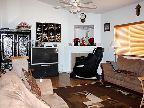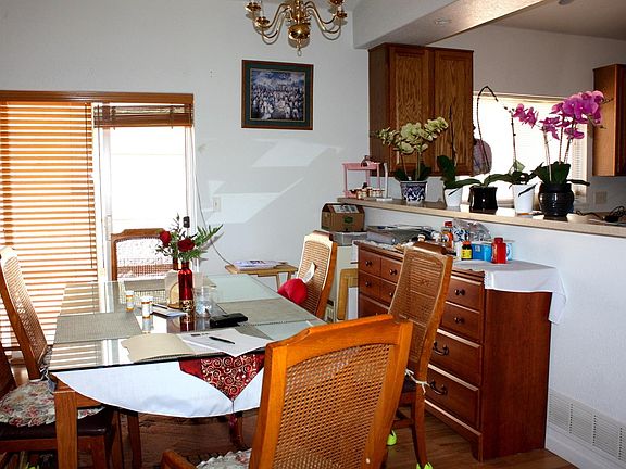 updated paired home in Welby Glen comes with hardwood floors, vaulted ceiling, master bedroom with master bath and walk in closet, large living room with gas log fireplace, open kitchen with all appliances, ceiling fan and vaulted ceiling, back yard comes with retaining wall and full length wood deck, HOA maintains the front yard, custom blinds in dining and living room