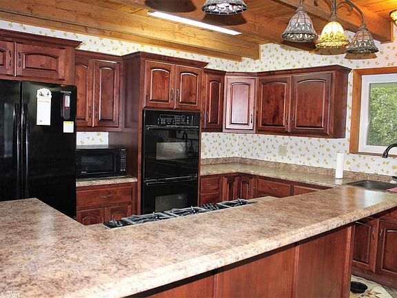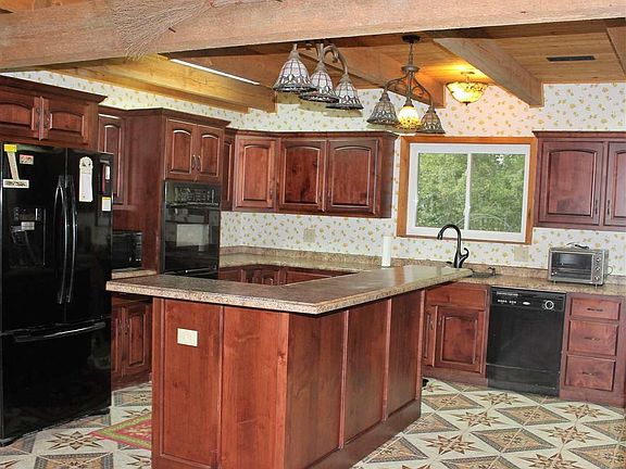 RUSTIC HOME AND RANCH FOR SALE! This 2,362 sq. ft. home is 3 bedroom/2 baths with a large back porch, sun room, recently remodeled kitchen, and large rock fireplace in living area. There is a 30x40 shop on property with lean to on each side. There are several outbuildings including a chicken coop. The 31.6 acres with this home is great for hunting, has a large pond stocked with fish, and a garden with several fruit trees. This property also has a 2 bedroom/1bath guest house.