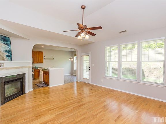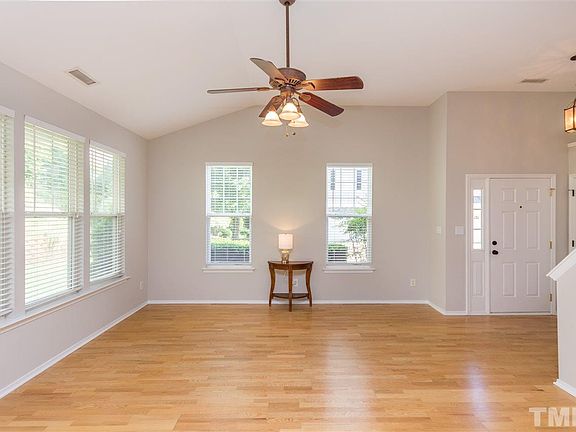 This immaculate end unit townhome is only attached by an outdoor storage room and shares no living walls. Convenient location to RTP, RDU, Umstead, Hospitals, and Shopping. Longer driveway provides for additional parking. Fresh paint inside and out. New vinyl flooring in the kitchen. Dual fuel double oven range with exterior vented microwave, professional pot rack, reverse osmosis water filtration and beautiful natural cherry cabinets make this kitchen a chef's delight. Open, airy and move in ready!