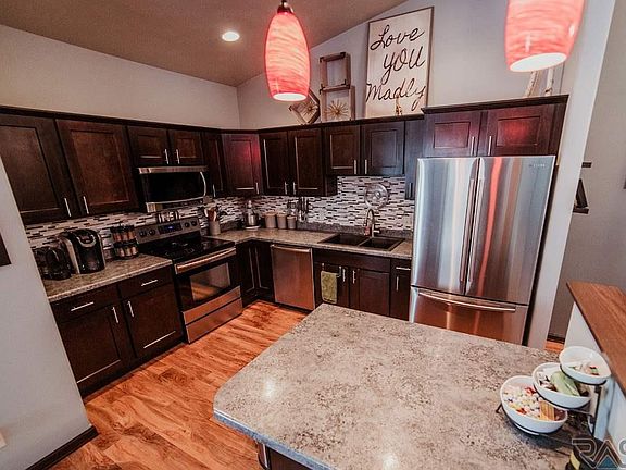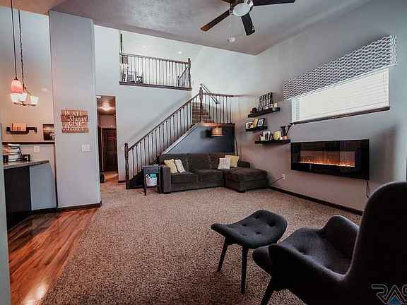 Beautiful loft townhome in desirable SW Sioux Falls neighborhood. This upgraded two story home has a wide open floor plan & expansive vaulted ceilings up to 18'. Upstairs master suite features: large walk-in closet, master bath, sliding glass door onto a deck, & loft area overlooking the main floor. Stunning kitchen with high-end stainless appliances & tile backsplash. 2 bed, laundry, large bath with double sinks on main level. Fenced yard area.