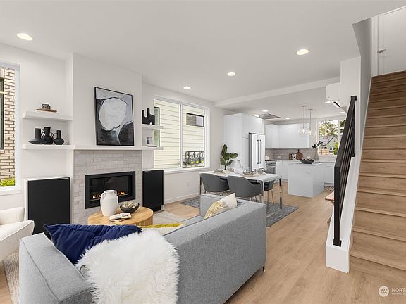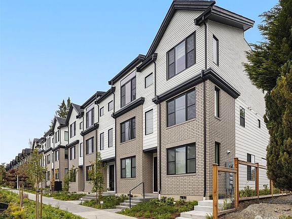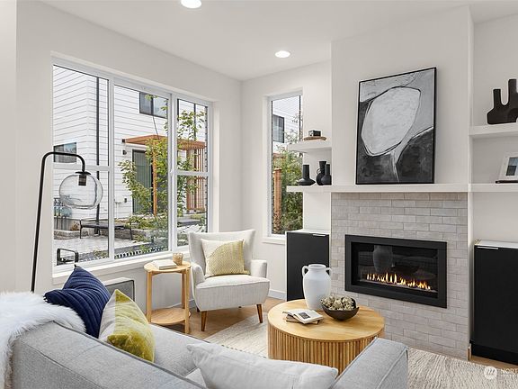 30-YR FIXED 5.875% RATE AVAILABLE - INQUIRE TODAY! This bright, west-facing, end home w/ a timeless brick facade offers a private roof deck (w/outlets, in-wall lighting, nat. gas & H2O outlets, & City, Sound & Mtn. views), deeded EV-Ready parking, & a spectacular location-.4 miles to the NEW Metropolitan Market & other shops, restaurants, parks, etc. A fantastic design w/ a rare main floor 1/2 bath, a bonus off the primary suite, a functional kitchen w/ workspace island, Bosch appl. (36" range!), custom cabinets, a gas fireplace w/ built-in shelving, & storage closet. The 2nd level=2 bedrooms, full bath, & utility room. The primary suite encompasses the 3rd floor-spacious bath w/ separate toilet room, walk-in shower, & ample closet space.
