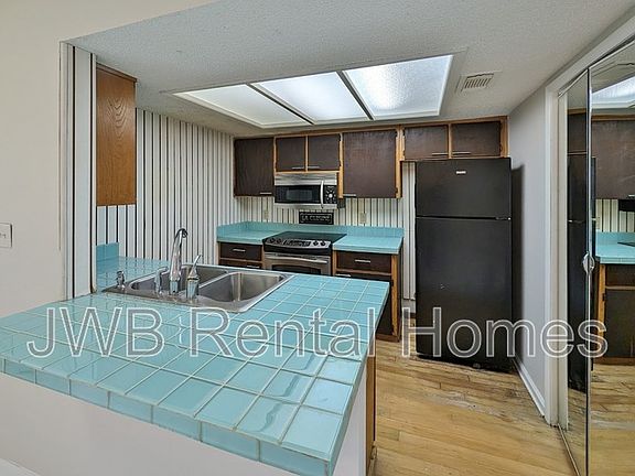 This inviting 2-bedroom, 2-bath townhome in Southside offers a balanced blend of comfort and convenience. Step into a warm interior with hardwood and tile flooring, ceiling fans, central A/C, and a kitchen equipped with hardwood cabinets, refrigerator, electric stove/oven, and breakfast bar. Enjoy peaceful mornings on the porch and privacy in the fenced yard. With washer/dryer hookups and a 1-car attached garage, this home is near Brackridge Park, Regency Square Mall, and UNF.
