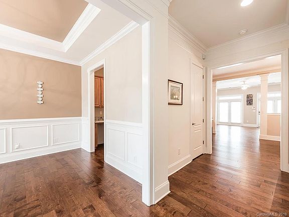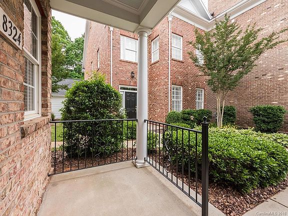 Beautifully updated full brick Charleston-style townhouse in fantastic location. Walk to Stonecrest, movie theater, restaurants, shopping, post office, bank. Close to 485, Ballantyne, Uptown. Features covered upper and lower front porches. Stunning new hardwoods throughout main floor, new granite kitchen counters/tile backsplash, new sink and disposal, new light fixtures. SS appliances. Bright and open with flexible floorplan. High 9' ceilings on main floor. Custom woodwork, crown moldings, raised panel wainscoting, built-in bookcases. Master has two new custom walk-in closets. New electronic exterior front and back door locks. Ceiling fans in all bedrooms and great room. Quiet location, protected privacy with fenced courtyard. 2 car garage. Excellent condition, impeccably maintained. Great schools.