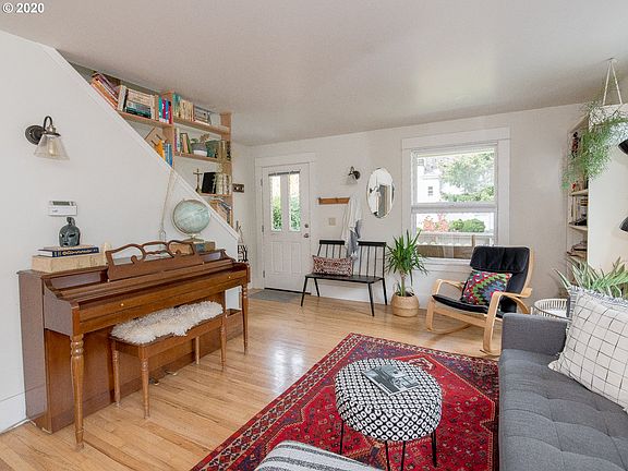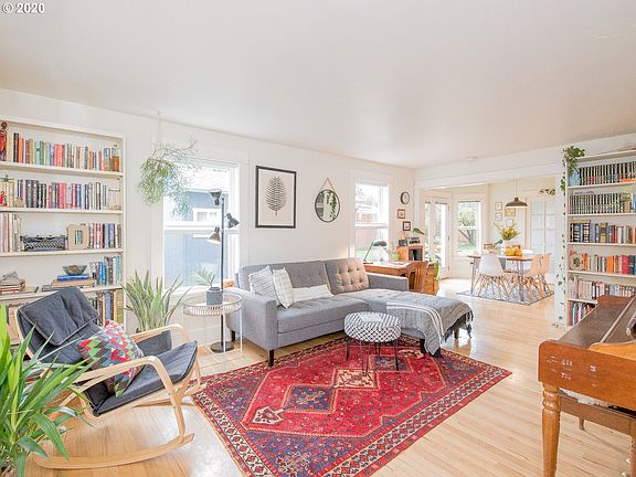 Picture perfect St. Johns! Quintessential sun-drenched Victorian w/ open spaces, high ceilings and wood floors. Main floor has generous living room, updated kitchen and dining area, bedroom w/ 1/2 bath. 2 beds w/ vaulted ceilings & exposed beams up & updated full bath. Detached office and storage shed in courtyard across from raised beds. Fresh paint inside & out. Large back yard is ready for your plans. 91 walk score, 88 bike score-get around town and cross the bridge to Forest Park with ease! [Home Energy Score = 6. HES Report at https://rpt.greenbuildingregistry.com/hes/OR10187710]