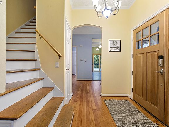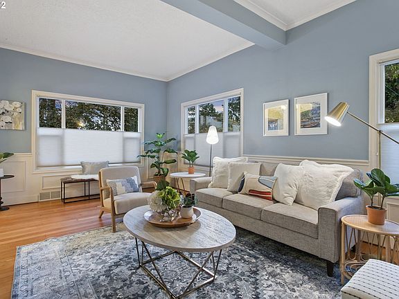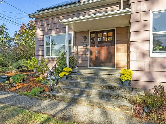 Quintessential PDX home! Huge lot & views. A gem at over 120yo but is young at heart w/solar panels, double pain windows, improved insulation, tankless H2O heater & earthquake retro fitting. Kitchen remodel featuring marmoleum floors, plentiful custom cabinets, gas range & walkout deck w/views towards the city. Primary bedroom on main. Upstairs: fun sleep porch vibe w/play area & bath. 10k sf corner lot, unfinished basement & detached garage for added potential.
