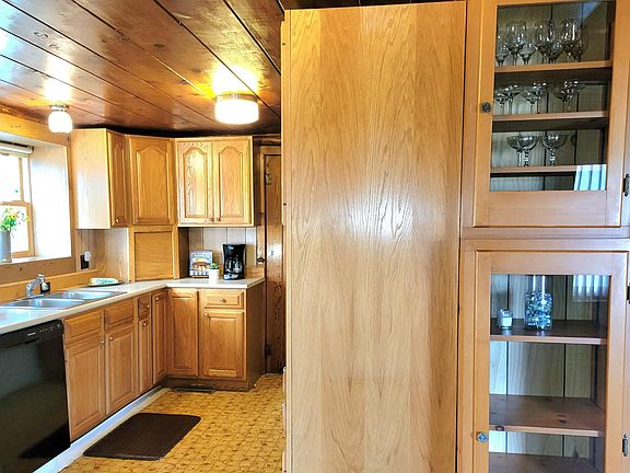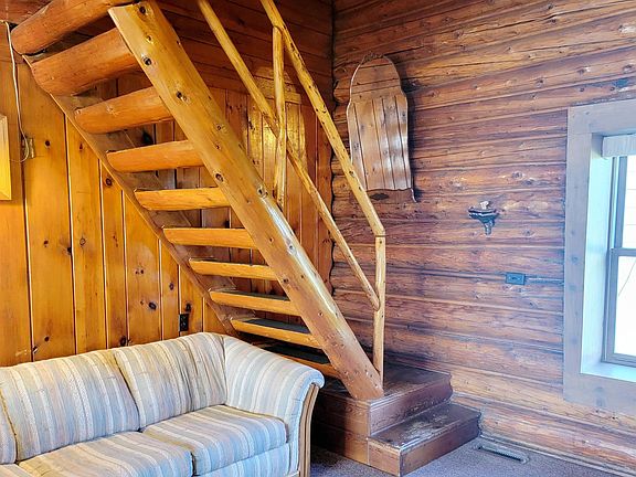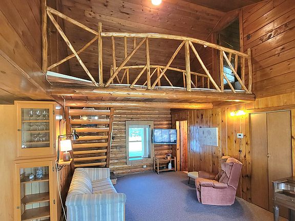 Come inside to view this unique home with it's knotty pine wood paneling, log walls and custom woodwork. Main floor: kitchen with eat-in dining area, large living room, bedroom and bathroom. Top floor has open walkway between the two bedroom. There is a washer/dryer and storage in the rear mudroom. Trex decking on the covered entrance with metal roof. Newer mechanicals include natural gas furnace and central air and septic approximately 5 years old. The detached garage is insulated with service cutaway for vehicle maintenance and small work shop. A 10x20 concrete pad ideal for your camper and 8x12 storage shed too. Large lot, excellent location with city water and all in-town conveniences near by. This is an estate sale but a home treasured by the family. Be sure to look at the picture of the original home when you come to look at this rare find.
