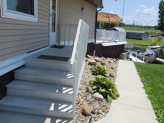 Lake Wawasee! Only minutes down the channel from your own dock and glorious sundeck to the activities on this famous lake!!! This year round home has many updates to satisfy the perfectionist. There are 2 bedrooms and 1 bath on the main level. The living area can hold a sofa and loveseat and the eating area is spacious. The bathroom is updated and the kitchen has newer appliances. The concrete walkway was recently installed. There's a newer double carport to protect your vehicles plus a storage shed with electricity. The new roof (a complete tear off) is just 2 years old. The mostly finished basement is accessed by a stairway. The basement wall was recently sealed ($20,000 with transferable warranty) to keep this large room very dry to use as you please. There's a new boat canopy at the deeded dock and an enclosed boathouse accessed from the basement where you could store your boat or jet skis. The overhead garage door needs adjusted or replaced. There's a newer electric box. Currently a VA loan and seller relocating. All offers require minimum 48 hours for response due to 1st right of refusal subject to sale of a Panama City Florida condo.