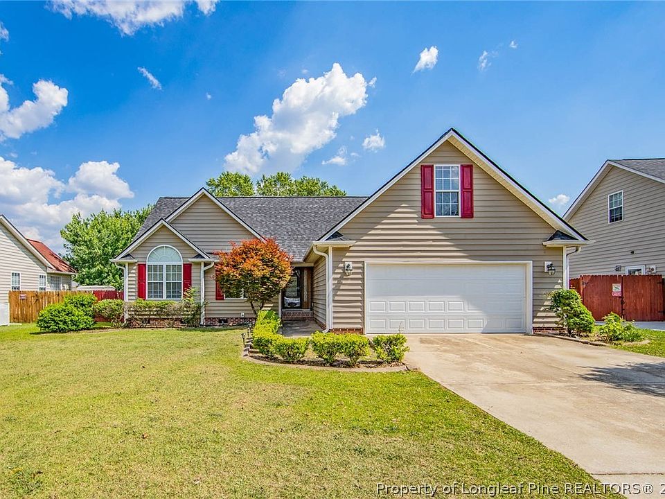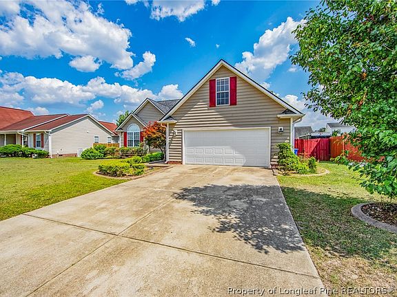 Come check out this Charming home in Hunters Crossing South! 4 bedroom, 2 bath ranch, bonus room over the garage (which can be 4th bedroom). Living room opens up to the dining & kitchen. Beautiful wood floors in living area & all bedrooms, including bonus room. No carpet! Fireplace in living, vaulted ceilings, tile in kitchen & bathrooms, blinds throughout, stainless steel appliances. Master bedroom has vaulted ceilings, closet with custom shelving, jetted tub, separate shower & duel vanities. Backyard has privacy fencing & a deck. Great for entertaining! New Roof April 2022! Seller is providing an allowance at closing to replace the HVAC Unit! Close to Fort Bragg, shopping, & restaurants. Don't miss out!