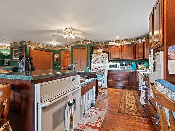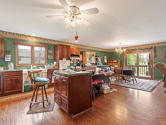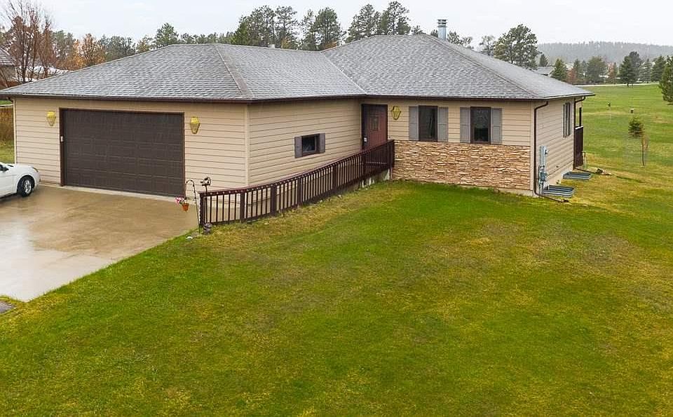 Listed by Shauna Sheets, KWBH, 605-545-5430. Potential awaits in this spacious ranch style home on a 1-acre lot in the desired SouthCanyon Country Estates neighborhood! *3 bedrooms and 2.5 bathrooms *Accented by wood floors, subtle vaulted ceilings and a gas fireplace, the open concept main level layout is perfect for entertaining friends and family *The L shaped kitchen has ample cabinetry, a pantry closet, large farmhouse sink, and built-in appliances- add onto the already sizable island for increased seating! *Main level laundry closet off the kitchen area for easy access *Main level master suite with private deck access, a great pass-through closet, and large 4-piece bathroom with jet tub and oversized walk-in shower *Lower level feature an oversized family room with egress window and 2nd gas fireplace, 2 good sized bedrooms and 1 full bathroom *Enjoy the peace and quiet of the neighborhood from the covered back deck, and keep an eye out for the ample wildlife. The attached 2-car garage is oversized, finished, and has a 1/2 bath. With great bones, a few minor cosmetic updates, and your own signature style, this property can be the home of your dreams- call today! *New roof, gutters, downspouts, soft and window screen in process of being installed.