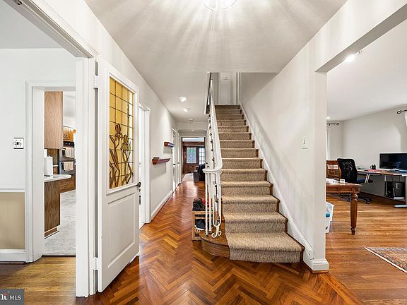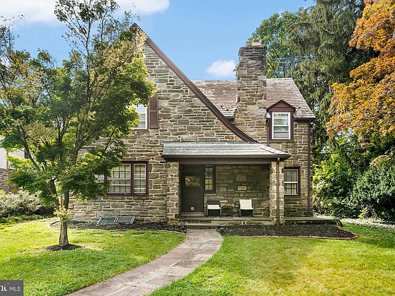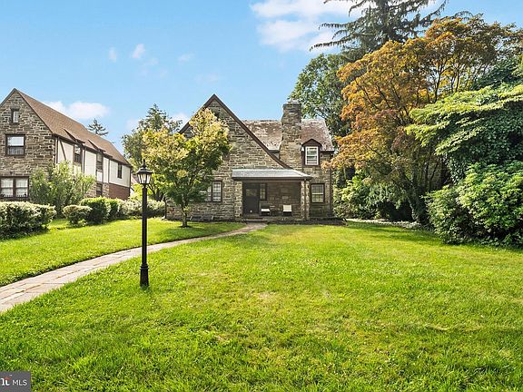 This Elkins Park Stone Tudor awaits! Follow the curved flagstone walkway to the inviting covered front porch where you can relax and watch the world go by. A Center Hall Entry boasts gleaming herring bone hardwood flooring. A bright and lovely Formal Living Room has recessed lighting, classic hardwood flooring, and a wood burning fireplace. The handsome Family Room is generously sized and perfect for entertaining or just relaxing at home, and includes walls of windows, beautiful random width hardwood flooring, rich wood built-ins, and french doors leading to a perfectly placed flagstone patio and backyard. The Formal Dining Room has recessed lighting, beautiful built-ins, and lots of windows allowing for beautiful natural light. The updated Eat-in Kitchen is complete with granite counter tops, stainless steel appliances, a double oven, plenty of wood cabinetry, ceramic tile back splash and has an outside exit. An updated Powder Room and coat closets are found in the hall foyer. And another Powder Room and the first floor Laundry Room are adjacent to the Kitchen. Upstairs you will find 4 cheerful and bright spacious Bedrooms, each with abundant closet space. The Master Bedroom includes a newer ceramic tile Bathroom with stall shower. The spacious Hall Bathroom has an art deco feel. The walk-up Attic is floored and offers plenty of additional storage space. The Finished Basement offers a fabulous Playroom or Bonus Room. The landscaped grounds surround the property with shade trees and plantings. This property has the unique feature of a rear driveway which runs between High School Road and Roberts Road, creating the ideal setting for families to gather, and shoot hoops, ride bikes, barbecue and enjoy the lovely setting. Located within walking distance of Sprinkles Ice Cream, McKinley Market, Elkins Park Library, Township Parks as well as the Elkins Park Train Station, Creekside Co-Op and surrounding downtown. 2 car detached garage. Slate roof. Property sold "as-is". Make your appointment today! PLEASE USE FOOT COVERINGS PROVIDED DURING SHOWINGS!!!