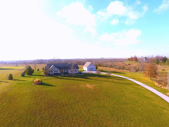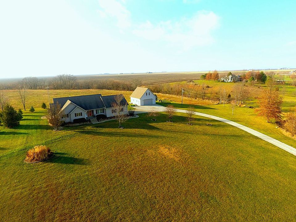 Gorgeous ranch home with open floor plan on 2.65 acres with creek. Remodeled in 2016 with quartz counter tops and tile backsplash in kitchen, updated master bath with tiled walk-in shower, soaker tub and double sink with quartz counter top. Cathedral ceiling in living room with stone fireplace. Heated & Cooled 26x32 detached garage with a finished bonus room in upstairs loft. 2 tier deck with a 24' above ground pool. New appliances in 2018, New well pump 2017, Electric dog fence installed 2015, landscaping 2020, and remodeled fireplace in 2018. Geothermal installed 2019 with added insulation in attic and basement. Lots of storage! Contact by phone at 217-521-4395!