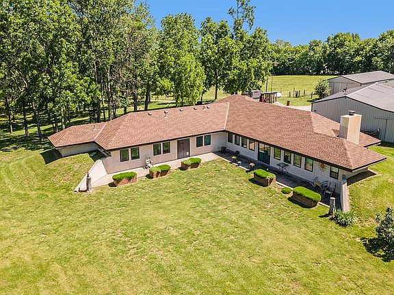 Step Inside & Take a Look at this Unique & Spacious Earth Contact Home, Nestled on Nearly 21 Acres of Beautiful Wooded Land. This Incredible Property Hosts a 60x70 Building w/5 Large Overhead Doors, 30x70 Building, 16/10 Large Shed Plus Small Storage Shed, Partially Fenced 15+/- Acres for Cattle, A Chicken Coop & Stunning Views! Expansive Living/Dining Room Offers Vaulted Ceilings, a Wood Burning Stone Fireplace & an Abundance of Natural Light. Situated off the Living Room is the Office, Ideal for Privacy and Concentration. Kitchen has an Abundance of Cabinet & Counter Space, Pantry, Stone Countertops, Stainless Steel Appliances & Room for a Small Dining Table. Primary Suite Includes a Sitting Room (or Nursery!), Walk In Closet & Spacious En-Suite Bath w/Dual Sink Vanity & Shower. Adjacent to the Entry, the Mud Room Provides Storage Space & Connects to 2 Bedrooms & Utility Room Including Cellar Access. Boasting Over 2,600 Finished SqFt, This is the Home to See!