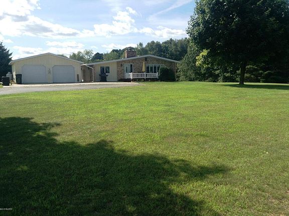 Welcome home to 8325 N State! This 3 (potentially 5!) bedroom/2.5 bath ranch homes sits on a lovely 7.19 acre setting. Main floor features living room with fireplace, open kitchen, dining room (could be an additional bedroom), master bedroom with remodeled bath, another bedroom, and a full bath that has been completely remodeled with cherry vanity, tiled shower/tub and floor. There is also an additional room with separate entrance that would make a great home based business or extra bedroom. Walkout basement is finished with bedroom, large bath, family room, and laundry. Two stall garage, two decks, black topped driveway, shed, 200 amp service, and pole barn complete this package! Pole barn is 24x48 and has electric, cement floor, huge loft area, and tall overhead door to store RV!