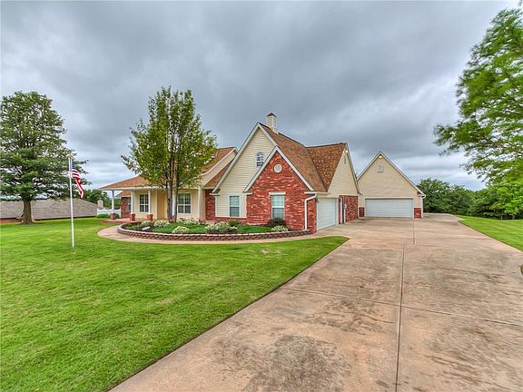 Schwartz-Carl Albert Schools on 1 ACRE. This home is absolutely loaded and the quality of craftsmanship shines throughout. Features include 3,025 sq ft, 4 bedrooms, 3 full baths in the house and 1 full bath in the detached garage, spacious living room with fireplace and tons of natural light, huge chef-friendly kitchen with granite countertops, lots of cabinet space, and the appliances were replaced in June of 2019. 2 dining areas, stunning master suite, large laundry room with sink, 1-year old HVAC & a tornado shelter. Need a place for your toys? This home also has a 2 car attached garage & a detached 2 car garage. Both garages are extra wide (2.5 cars). The outside is just as impressive with a manicured lawn, covered back porch, gorgeous flowerbeds & trees. The roof, guttering, & siding was replaced in Jan 2020. Located close to Tinker AFB, Boeing, Downtown OKC, highway access, shopping, dining, parks, Draper Lake, and more. Homes like this don't come available often. Don't wait.
