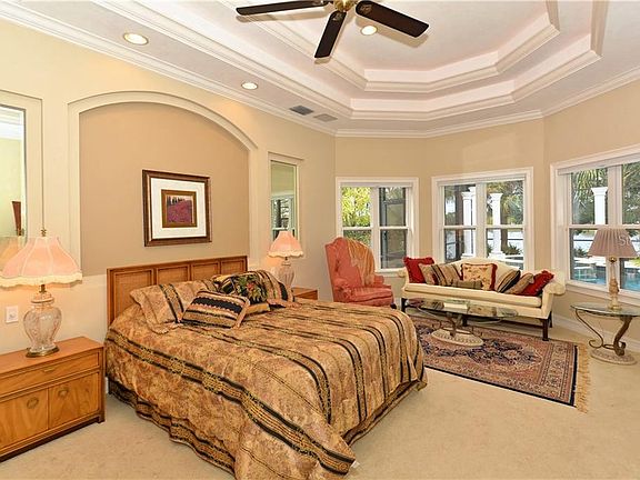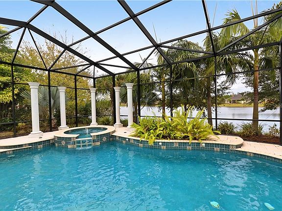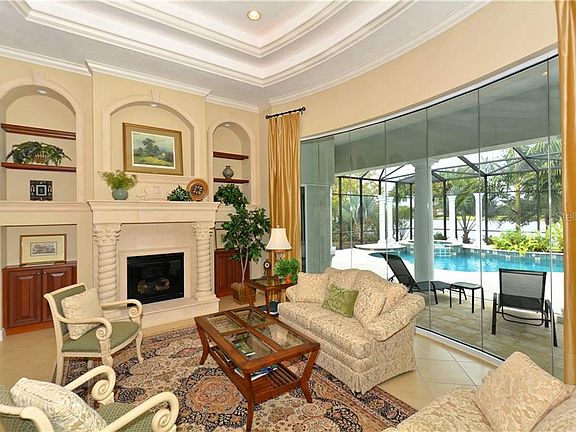 Enjoy living in this lakefront home on a quiet cul-de-sac street within the gated Concession Community, one of Southwest Florida's premier golf course communities, designed by Jack Nicklaus. The double door entry leads one into the formal living room with large aquarium window with view of pool and lakefront. The double tray ceiling has crown molding and recessed lighting. The gas burning fireplace is surrounded by stone and built in shelving. The formal dining room has a tray ceiling with recessed lighting. The study has a tray ceiling with recessed lighting and ceiling fan. The kitchen has granite counter tops, wood cabinets and a large walk in pantry. The dinette area has aquarium glass and a sliding glass door to the pool and lanai. The large family room has a double tray ceiling with recessed lighting and ceiling fan. The sliding glass doors provide an expansive view of the pool and lake. The owners' bedroom has a tray ceiling with recessed lighting, ceiling fan and sliding glass door to the pool and lanai. There are two walk in closets. The owners' bathroom has a jetted tub, a large walk in shower area with two shower heads, and dual sinks. The inside utility room has a built in desk and closet. The pool area has two covered areas in the screened lanai and decorative columns around the spa. An expanded 3 car garage allows for golf carts, freezer and storage. The Concession community has 24 hour gate guard for security. Membership in the Concession Golf Course is optional.