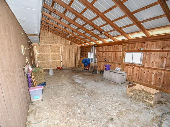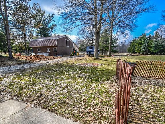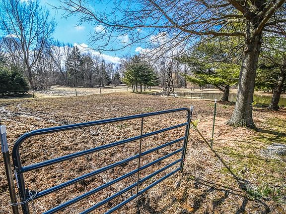 Welcome to this remarkable Ranch home sitting on your private oasis of 7 acres including a stocked pond, horse stable and a wooded back yard. Enter in the front door to be greeted by a large living room with a beautiful fire place, take a turn and you'll be amazed by the HUGE log Great Room with vaulted ceilings and skylights. The kitchen offers a large island with plenty of counter-top and storage space. After making dinner make your way to your stunning all log dining room which looks out onto the back yard. When it's time to relax, exit the back door to your stocked fish pond with a windmill aerator, your horse barn with water, electric and a loft for storage or go see your private wooded back yard. This home also has city water and gas. New hot water tank in 2017, furnace new in 2015, new solid 6 panel interior doors and new energy efficient windows. Temporary fence to be removed upon sale. Carpet in bedroom will be replaced with laminate wood flooring.