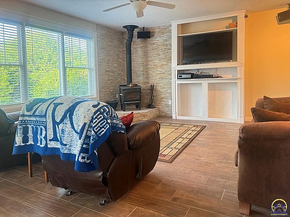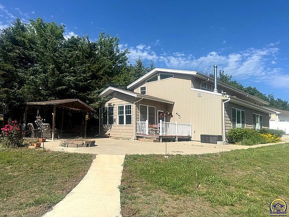 Looking for some solitude, yet still close to the city and conveniences? This property combines the best of both worlds! Two large and amazing primary suites, both with large walk-in closet and their own bathroom. This home was built solidly with 2x6 construction throughout and is super-insulated, including double-paned windows all around. Zero-step entry main level, wide 36" doors to all rooms and wide halls and stairway for easy accessibility. 9' ceilings on main level and vaulted 2nd floor. Main level laundry, bedroom and bathroom. Huge kitchen! Set on nearly two beautiful acres, with wooded area, walking trail, and babbling creek, this property is a peaceful place to escape. Wide open skies for stargazing, and a large patio, fire pit and pergola for entertaining. Wood burning stove for cozy winter evenings, beautiful bright sunroom for spring and fall days as well as morning coffee. You'll love the extra-deep 2-car garage with workshop space. Brand new upper roof just replaced after wind damage. The new 28x40 metal building is 18' tall and even features a loft for extra storage or hobbies. It's on a separate 250Amp electric service and is stubbed for future water and septic. Conveniently located just a half a mile north of the town of Auburn with all the basic necessities, and easy 10 minute access to south side of Topeka - you're never far away from what you need. Come and see what you've been missing.