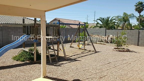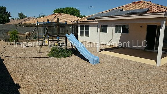 This amazing 3 bed 2 bath home has a large, open floorplan. The home has new upgraded carpet and padding, as well as custom paint. The kitchen includes a fridge, dishwasher, disposal, stove, walk in pantry, built in microwave and island. The home also includes washer and dryer hookups. The front and backyards are desert landscaped for convenience, and the backyard has a large covered patio along with a play set. Additionally the a/c was just serviced, the roof was replaced in 2015, and solar panels were added to the home. This is a MUST see! Features Single level, built in 1998 Single family home 3 bed 2 bath home 2 garage spaces 1567 sq ft SRP for electric Solar panels that measurably reduce your utility bill City water & gas Covered patio Central a/c Gas heat Desert front & back yards Home warranty 9' plus ceilings Children's playground Washer/dryer hookups Cable ready Ceiling fans Ceramic tile Dishwasher & disposal Range & microwave Kitchen island Fridge Spacious walk in pantry Walk in closets Spacious backyard Landscape irrigation Assistive animals only This property allows self guided viewing without an appointment. Contact for details.