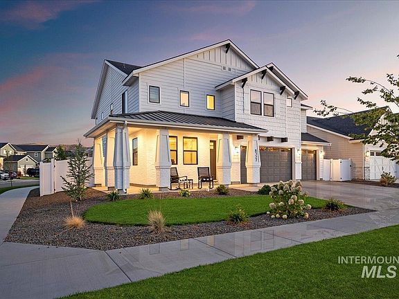 Dry Creek Ranch farmhouse on an amazing corner lot. Watch elk graze the foothills from your bedroom. No rear neighbors, enjoy foothill views from every room. Thoughtfully designed, this home boasts high quality finishes from top to bottom. 5 bedrooms plus a huge bonus room and a downstairs office makes this home desirable for so many. As you pass the front porch into the home you'll notice high ceilings in the entryway, hardwood floors and a beautiful open floor plan. The stunning kitchen has cabinets and countertops that flow through the dining area, Thermador cook top, walk in pantry, and a large island. The impressive fireplace and built-ins top off the comfy living room. Bedroom downstairs is great for guests! Head up the wood stairs to 4 bedrooms and a bonus room with incredible views! Custom touches through each bedroom and bathroom including designer light fixtures and full tile showers in all 4 bathrooms. Private backyard with open sky, garden space, and pre-wired for hot tub, and heated 3 car garage